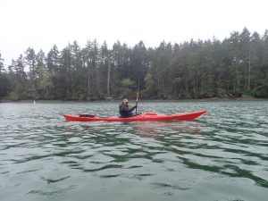 - entry at sea – we had to master one technique to get back into the kayak in the ocean. The one we practiced requires two people and then we watched a demonstration of about half a dozen more ways. I’ve never much worried about this in the relatively warm Winnipeg River. I always thought I’d just hang on to the boat and kick myself to shore if I capsized. That’s not really an option in the frigid 9º C Pacific Ocean. I had a really hard time with this and will be practicing in Pinawa