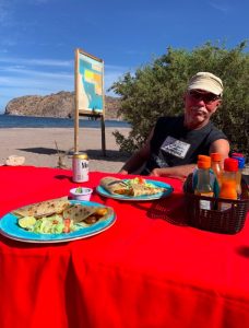 In the afternoon the wind picked up making the ocean just a little too choppy for the boards. That’s when we, and almost everyone else on the beach would wander down to the restaurant for some fish tacos and cervesa. The fish is, of course, fresh from the sea. The service is pleasantly slow, leaving lots of time for idle chit chat, like “where are you from?” and “where have you been?”