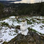 We spent the day strolling along the ocean in the most amazing dog parks, Saxe Point and Macaulay Point. The “kids” continued on from there to wander around downtown for a few hours while we deposited the dog at home and spent the afternoon at the local Rec Centre. There had been a rumour bantered about everywhere we went that there might be a white Christmas. That seemed too much to ask for. By the time we all gathered again, darkness prevailed and the salmon was under the broiler. It wasn’t until I walked the dog that I entered this winter wonderland.