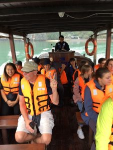 Before returning this morning we joined in Tai Chi on the upper deck at 6:30 AM. We could see Tai Chi being done on the neighbouring boats too. It’s a formula, but a pleasant one. After Tai Chi we went off in the small boat to visit Hang Sun Sot. Translated loosely this is amazing caves. You are meant to climb in and say “wow!” says our tour guide Tam.