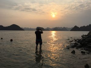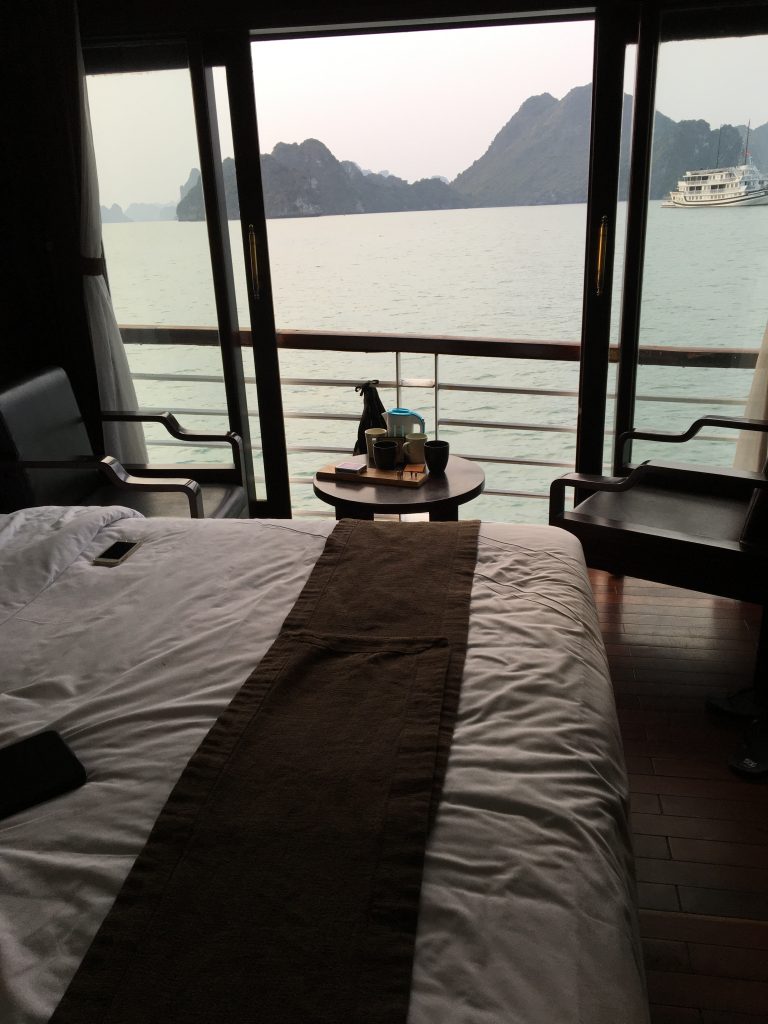 We’ve left the noise and congestion of Hanoi for this incredibly peaceful sanctuary. Last night we slept with the door cracked open, the lights of neighbouring boats twinkling in the distance. There’s no Netflix or television or Facebook to interrupt the zen.