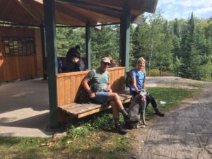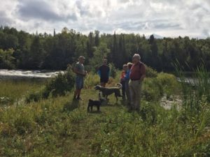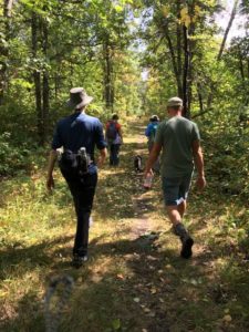 We attracted a smaller than expected group, likely because we planned the walk for a Wednesday. Hiking today are: Peter, Sharon, Ken, Ray, Jess, Linda, Bridgette, Mike, Tucker, Barley and myself. I plan to make this an annual event, but we will be planning it on a weekend next time. The entire trail is in excellent condition. There are two trees blocking the trail along the entire length, that’s it, and we brought the new trail maintenance guy (Ray) along with us so he knows what to do about that. In June I cycled the Old Pinawa route and carried my bike over dozens of downed trees. We have the best volunteer maintenance crew ever to get those all cleaned up so quickly.
