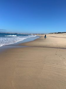 After the extravangance of our beautiful hotel in Santo Andros, we decided to try for the municipal alburgues today in Marinhas. Actually we don’t care where we stay, we are just shooting for about 20 k each day. Not all of today was on the beach and we took a bit of a short cut through a park.