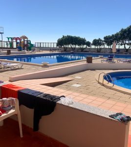 I swam in the ocean, and again in the pool. We both washed our clothes – those double knit socks can only be washed when a blow dryer is available to help dry them.