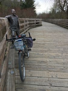 I’m sure there’s a ton to do on Salt Spring, but we have arrived after a long bike ride, on a cool spring evening with nothing on our agenda. We took a stroll through Ganges, the shops already closing at 5 PM. I can imagine this changes at the height of the tourist season, but this afternoon we’re mostly window shopping. The local dispensary was open so we stopped by. We had to show ID and then were ushered into the back room, where we bought some gummy candies. From there we were drawn to the Local Pub, in caps because that’s its name. A young man was playing his guitar, and wine just seemed the right thing to order. The pub is on the ocean, and I watched a few young hippies sitting on the rocks outside enjoying a joint before making their way back into the pub.