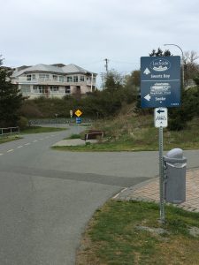 You can cycle through the seaside town of Sidney, but the route recommends bypassing the downtown area. If you’re looking for a lunch spot we found the Waddling Dog. This pub is right on the trail and serves up great fish and chips with a large choice of beer on tap. For other choices you might want to head into downtown Sidney, not far off the trail.