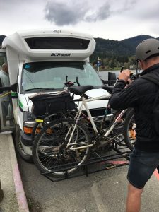 We didn’t, I don’t recommend it but you might as well be ready because you might have to. Nothing I’ve read recommends cycling the highway between Fulford Harbour, where the ferry lets you off, and the town of Ganges. Ganges is 14 km from Fulford Harbour, but the road is narrow with no shoulders, the speed limit is 80 kph and it’s hilly. Luckily, the Salt Spring Island bus has a bike rack and costs only $2.25 (but does not accept BC Transit transfers). The only problem is that there’s one bus per ferry and space for 2 bicycles. We eyed a third bicyclist warily on the ferry, but luckily he didn’t want to board the bus. I can’t imagine those spots are easy to get at high season.