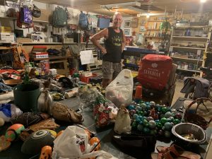 We continually find things that can’t really be sold but shouldn’t be thrown away either. These we’re putting in a free pile. Every item that walks away brings us both a smile. A couple of tables from our old 1977 Westfalia found a home. Kids are finding new summer toys. School supplies, should they be needed this year are walking away. If you live in Pinawa, 19 Alexander is worth a walk by – every day as the pile is ever-changing.