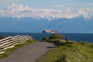 A seagull looked passively on, as if she does this all the time. He stood quiet and still on the rocks she was pummeling, but then suddenly took off into the air, crying his melancholy song. He dove into the raging sea, and professionally plucked some food right out of her grasp. Impressive. What is the ocean so angry about? There’s not a hint of wind causing this behavior, my hair isn’t moving. The sun is shining and the Olympic mountains have popped out of the horizon like a photograph.  Maybe she’s angry at me? At us.