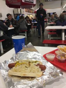 First things first, a walking tour of the city relieved any check-in tensions. Calgary is a beautiful city!  My fitbit said we walked 8.7 kilometres. We crossed the Bow River several times, Christmas lights decorating everything. It’s Saturday night and downtown is full of people, going to the theatre, skating, dining or like us, just going for a walk.  It feels completely safe. After such a long walk, we elected to retire for the evening and order pizza, and forget about the doubling price of our hotel room.