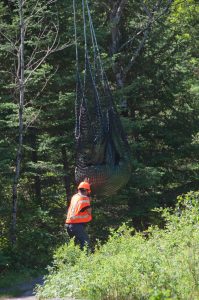 Even for a helicopter, this kind of job is rather novel. They are used to moving things around, but we were asking them to be very precise. In some locations, the canopy on the trail would prevent the pilot from having any visual of where he was dropping.