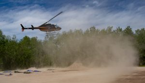 “Batabatabata”, the sound of the helicopter hovering around Pinawa all afternoon today, June 27 couldn’t be missed. Is there a forest fire nearby? A major tragedy calling for STARS over and over? No, just Marsha Sheppard and her team of trail maintenance volunteers spreading some gravel, by helicopter.