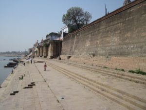 There are many ancient palaces built along the river, abandoned now but still belonging to other cities and districts in India. These were where people near the end of their lives would come to stay, so they could die here.